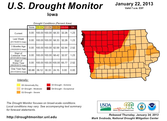 The thing that does get my attention these days though are articles such as this one from one of the local television stations. When this came across my news feed I just had to groan a little at the suggestion from "experts" that this may be a two-year drought. This past year was a bit stressful with the lack of rain, heat, and of course the rising feed prices. In the short almost five years on the farm I have seen my hog feed prices more than double! At the same time I have not doubled the prices of my products for sale and have been working very hard to improve my efficiencies on the farm when it comes to feeding.